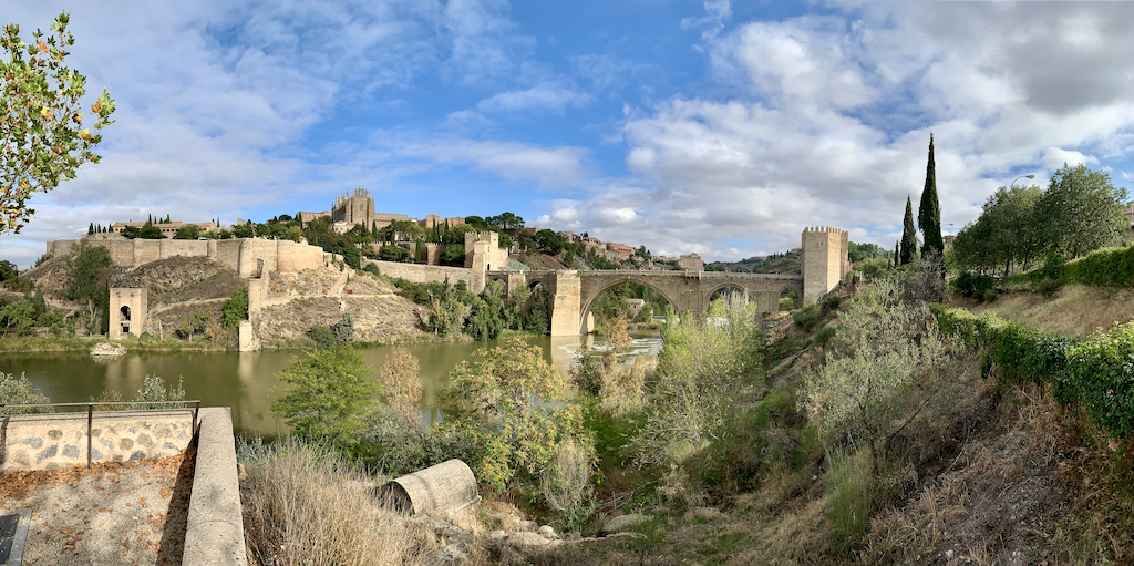 This morning we woke up and it was still dark outside even though it was 8am. We went downstairs had breakfast and then took our bags down, dressed and mounted the bikes for a 50 kms trip out of Madrid. It seemed to take ages to get out of Madrid but it was only when we had about 40kms left to Toledo did we feel like we were back on the open roads we had become used to in Spain. The drivers all of a sudden changed and became exemplary again. We’re still so amazed by these big semi trailers that go on the other side of the road to give you distance or if there is on coming traffic, they simply slow down and wait. It really is fantastically amazing and we’re so pleased that there are drivers like that in the world. It alll of a sudden becomes possible for other cities. Spain has so much to offer the rest of the world when it comes to driver courtesy for all road users including pedestrians.