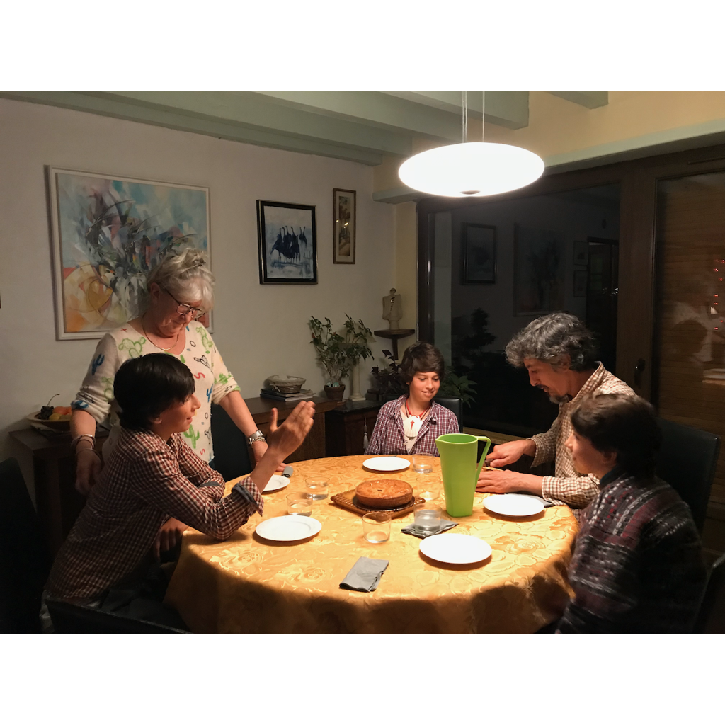 Lisa often laments the fact that the boys never got to meet this incredibly smart, knowledgeable, able, tough, feminine grandmother of theirs with a wickedly sophisticated wit and sense of humour and a heart so full and wholesome that thoughts of her always delivers a pang of longing. As parents Lisa and Xavier often wonder how the boys’ lives would have changed if they would have had the opportunity to meet such an incredible woman. She would have been such a strong presence in the lives and would have shaped their souls in a way that no one else could. It was a night where we were reminded of her brilliance and how much we miss her. We have been so fortunate to meet with Marc, Jean and now Beatrice who as Monique’s siblings, carry a very strong, representative piece of her. But Beatrice has this added dimension of La Mamie, the boys’ great grandmother who died Christmas last year. This powerful woman that had lived through the German occupation of their farm, survived her husband, her daughter and had an iron core that was delivered with the greatest of grace and the pointedness of a dart when needed. Beatrice, made the beautiful salad “A la Mamie” and shared with us two different types of basque cakes (natural and cerise). Virginie showed up at about 10:30pm after work and reinvigorated all of us with her jovial, spirit and sharp intellect. La famille Jardini is spectacularly colourful. Filled to the brim with creative spirits, sharp minds, mind miners, refreshingly curious, excitingly liberated creative spirits that with ease devise new approaches, alternative insights. They are just pure magic. The boys have certainly drunk deeply from the holy grail of “La famille Jardini”. Every time they talk about them there is a twinkle in their eyes. It’s moments like this that the distance of Australia is sorely felt like a banishment from an extended family love.