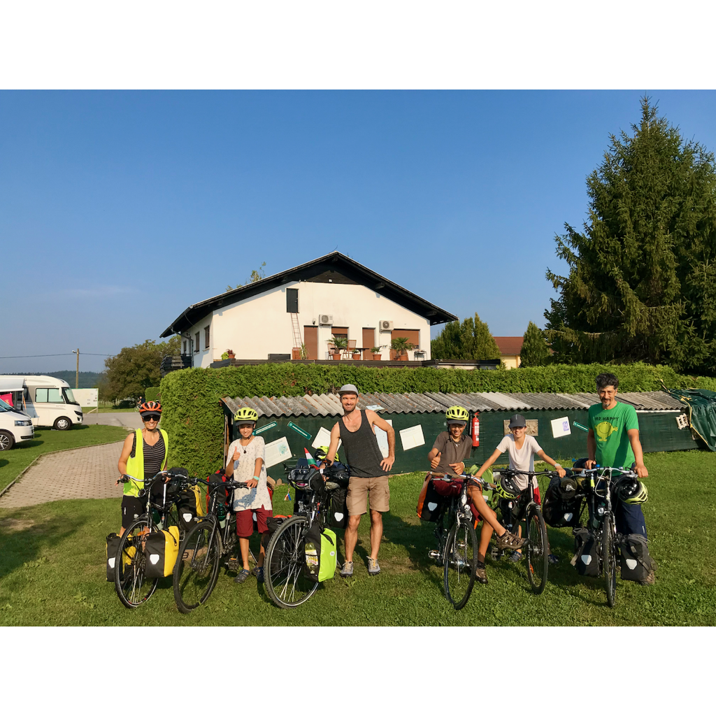 As soon as we got off the train in Maribor, Arsène’s hand became a really acute stress factor. Inside, outside, every few metres we had to try something else. More calamine lotion. More water. We couldn’t go any further than the nearest camping spot at 6kms as a result. He was absolutely hysterical on the bike with the trancelike state of madness that had returned. Somehow we ended up splitting into two groups and lost one another which didn’t help the situation at all. Lisa and Arsène didn’t have any map or any idea where the camp ground was. We started going back but didn’t know how far we should go. Should we stay put or retrace our steps? Could Lisa leave Arsène in one spot while she went searching? Would she remember where he was? It all started to feel very wrong. After multiple whistles, call out and horn honks, we found one another again and in fact were travelling in parallel but on opposite sides of the bushy nature strip.