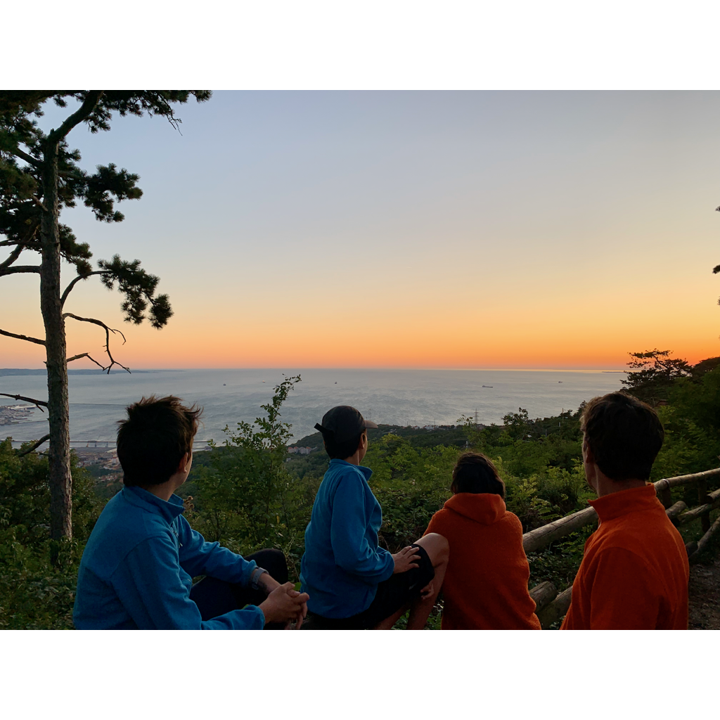 We came in to Italy through a back gravel bushy track from Slovenia which was fantastic. Without knowing although sensing we had crossed the magic boundary, we were welcomed by many butterflies and greenery, rugged bush path and warmth. Just delicious. We were so elated to be in Italy. It was so special with Kornel. He has well and truly become part of the family. We cheered and even the train in the distance tooted along with our cheers. We slept on the plateau overlooking Trieste. It’s beautiful up here.