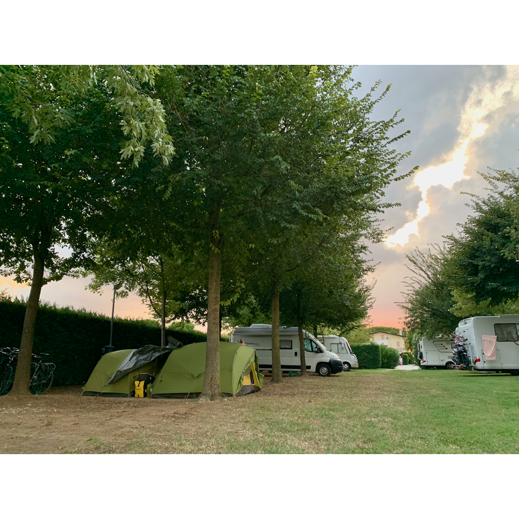 As we were getting closer to the expensive camp ground that Lisa called this morning, she took interest in an Agricamping sign so went to have a look. We ended up pitching our tent in this camping ground for the next two nights which is so much nicer than the hideous camping village fun parks and for almost half the price. The boys were really annoyed because all they wanted to do was jump in a pool. At least we were able to stick to our budget today. The owners of the camp ground and a few of the other campers were curious about what we were doing, so we struck up a number of conversations which provided a much appreciated exchange with others.